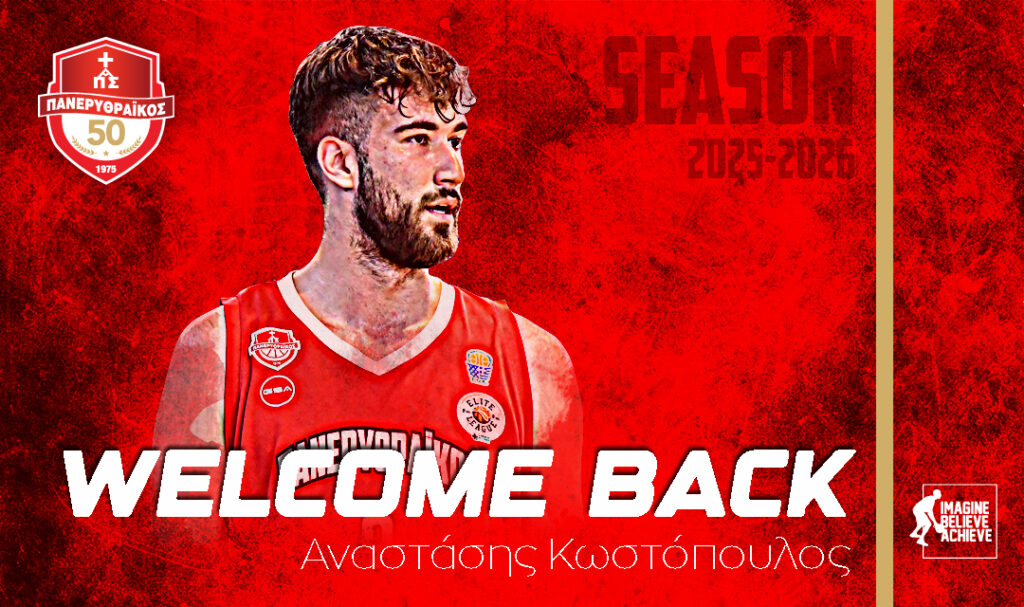 Η διοίκηση του τμήματος μπάσκετ του Πανερυθραϊκού ΑΣ ανακοινώνει την εκ νέου έναρξη της συνεργασίας της με τον αθλητή Αναστάση Κωστόπουλο, ο οποίος επιστρέφει στις τάξεις της ομάδας μας.